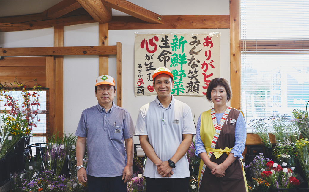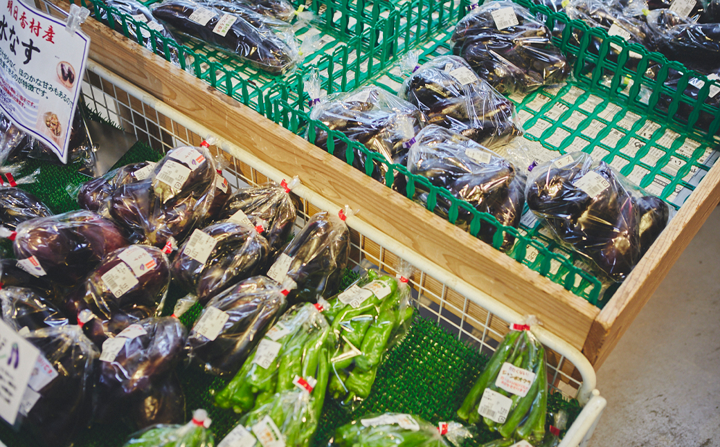 「バラエティに富む品揃えが当販売所の特徴です。なぜ珍しい品種が多く並ぶのか、と言いますと、農家さん同士がお互いに自分の畑を守りつつ、差別化しあってがんばろう!という気持ちで取り組んでおられるからです。”今度はこれを作ってみよか~”といった感じで、スーパーマーケットではなかなか見かけない野菜作りに、楽しくチャレンジされる農家さんも多く、ユニークな品揃えになっています。もちろん、直売ですから、安全・新鮮でお買い得な価格には自信があります。おなじみの野菜の品質も抜群です。観光客の皆様にも大好評ですが、舌の肥えた地元の方々もふだん使いに利用してくださるのがうれしいですね」(店長・福井智也さん)