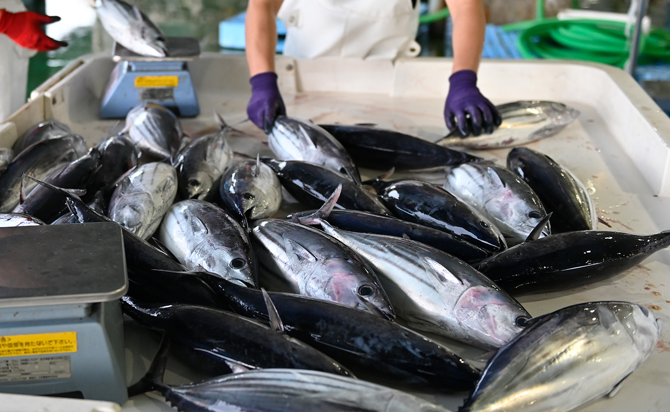 大月町近海の、「魚の道」と言われる黒潮の海域で、1本釣で釣り上げているかつおは、高鮮度・高品質、脂が乗っているのが特徴です。