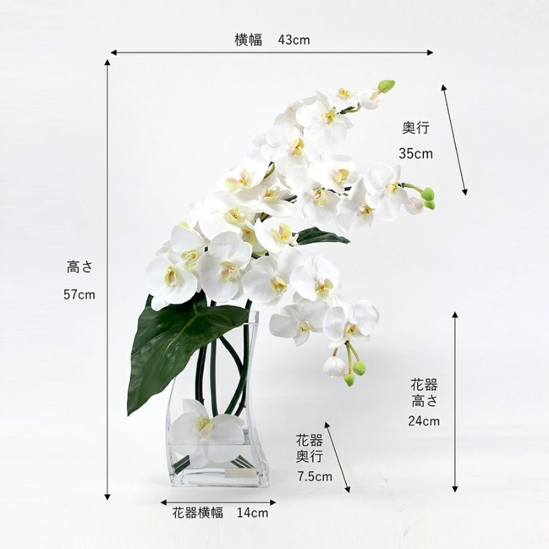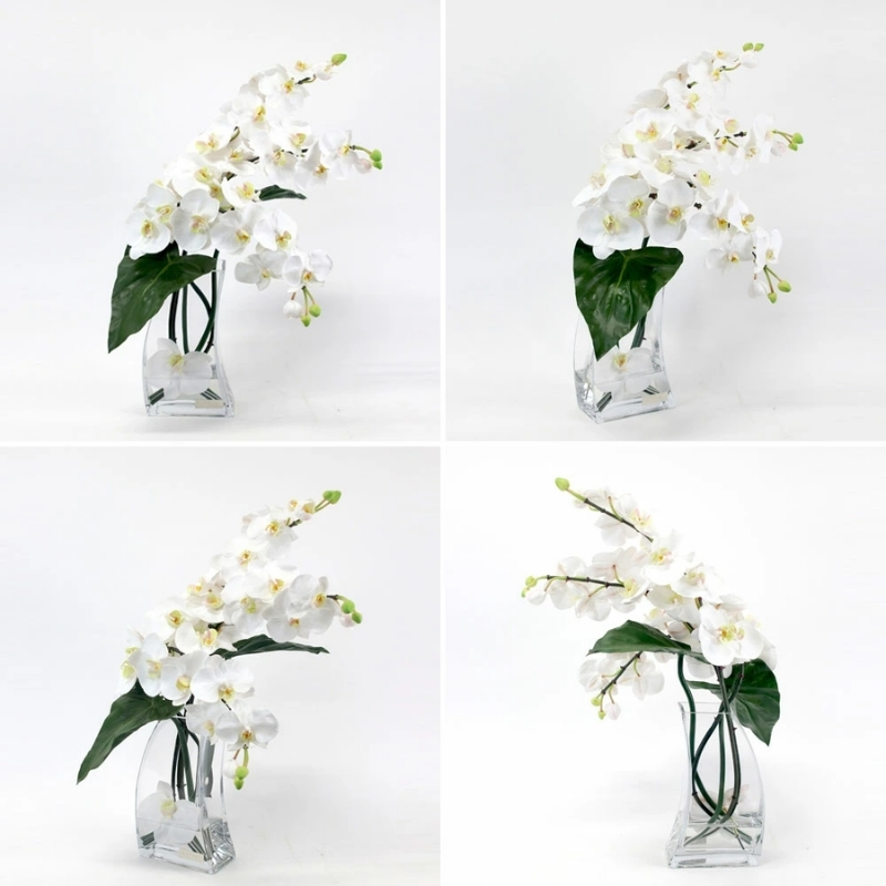 ファレノプシスの柔らかなラインと、フラワーベースの丸みがマッチしたナチュラルモダンなアレンジメントです。