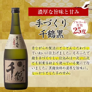 「手づくり千鶴黒」は、黒麹独特な濃厚な旨味に、しっかりとした芋の甘みがお楽しみいただけます。