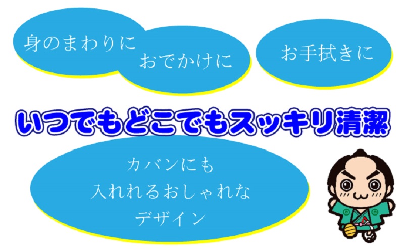 お出かけに、お手拭きに、身のまわりに、いつでもどこでもスッキリ清潔。