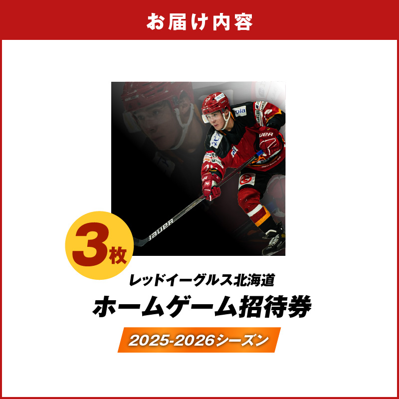 レッドイーグルス北海道ホームゲーム招待券3枚となります。