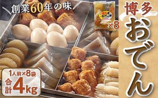 かつおベースのだしにアゴだしを加えた本格スープで味付けし、九州ではベーシックな6種類の具材(糸こんにゃく・ちくわ・玉子・ごぼう巻・三角こんにゃく・大根)が入ったレトルトおでんです。