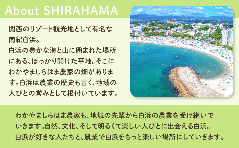 関西屈指のリゾート地である白浜町は、近年ワーケーションの聖地と呼ばれ、日本三古湯の白浜温泉や、関西屈指のビーチである白良浜海水浴場、「こころにスマイル 未来創造パーク」をテーマに全世代の方が楽しめる動物ふれあいテーマパークなど、数々の魅力あふれる町です。