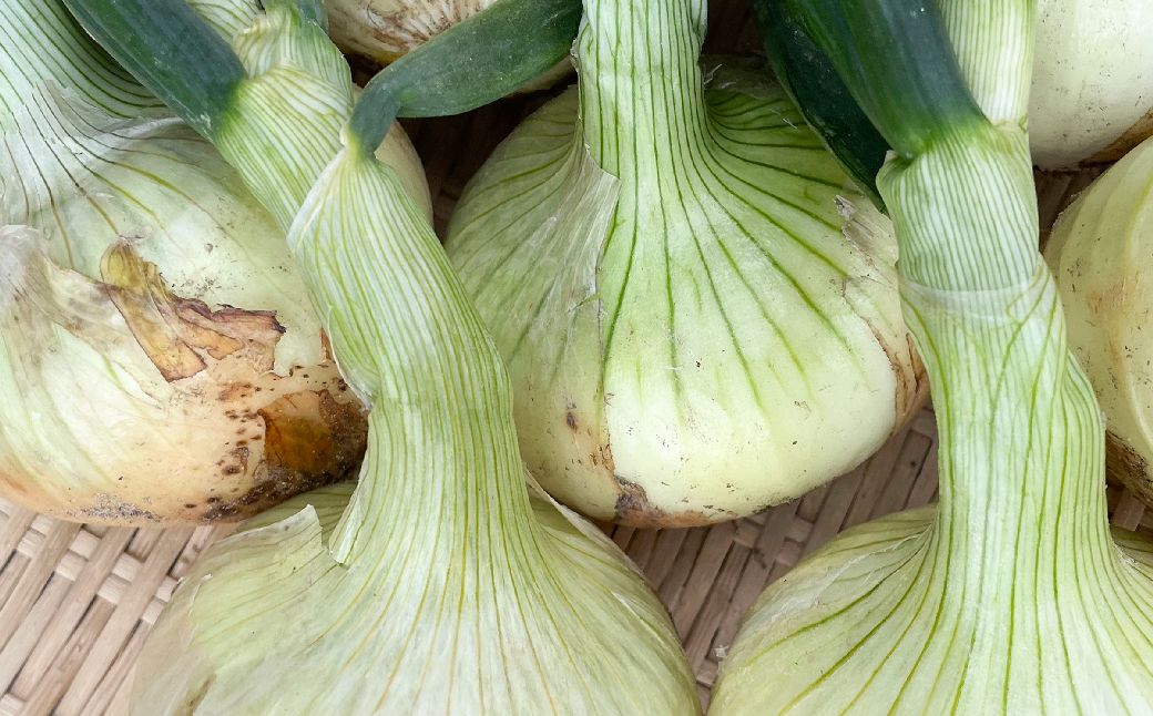 淡路島の竹を肥料に加え、竹の殺菌効果、乳酸菌の力など自然の恵みを生かした農法で玉ねぎを栽培しています。特別栽培農産物の新玉ねぎ「あやたけ」を是非ご賞味下さい。