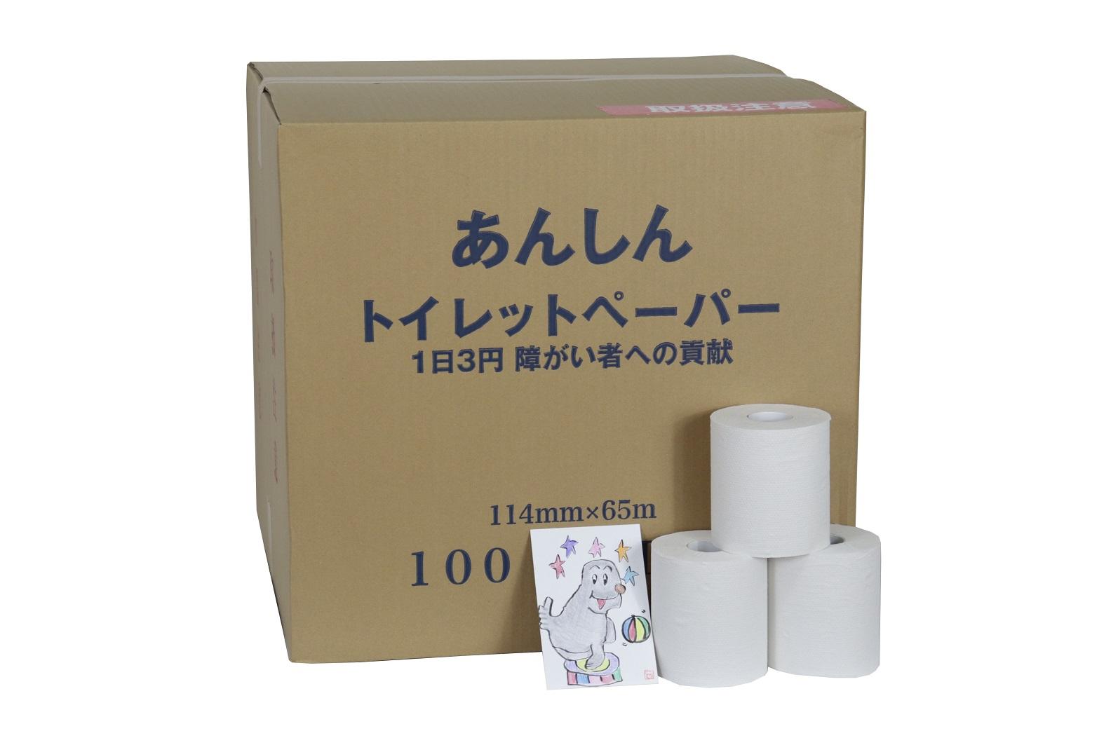 障がい者福祉作業所「あんしん」の自社工場で生産加工されているシングルTP100個を、より地球環境に優しい個別包装なしでお届します。TPの購入支援は障がい者雇用と障がい者が手慣れた作業を安定的に取り組む基となるもので、あんしんのTP作業を支え、お客様との絆としても重要なものです。ゴミ減量や環境保全にも貢献する雑古紙を再利用も漂白剤不使用で安心です。環境に大変優しい製品です。