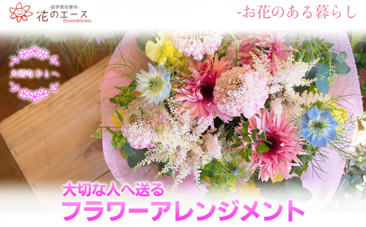 季節のお花を豊富に取り揃え、花束やアレンジメントに盛りこんでおります。季節によって変わる作品を楽しんで頂ければ幸いです。