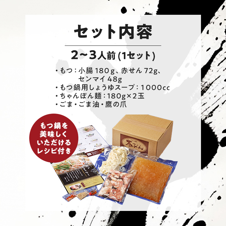 もつ(小腸180g・赤せん72g・センマイ48g)300gスープ(醤油または味噌)1000cc