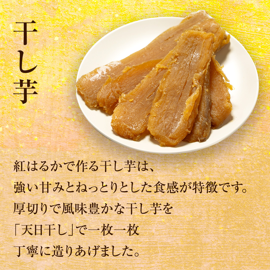厚切りで風味豊かな干し芋を「天日干し」で一枚一枚丁寧に造りあげました。