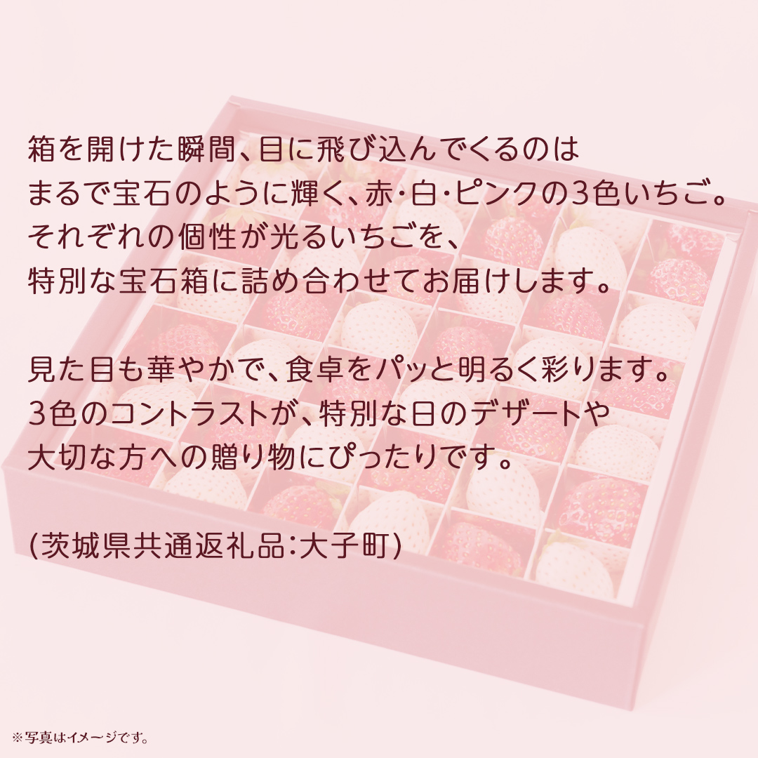それぞれの個性が光るいちごを、特別な宝石箱に詰め合わせてお届けします。