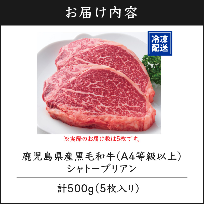 鹿児島県産黒毛和牛(A4等級以上)シャトーブリアン 500g(5枚入り)