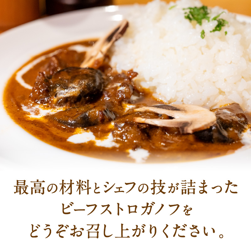 こだわりの材料で最高のビーフストロガノフをつくりたい。最高の牛肉を探し求めてフレンチシェフがたどり着いた尾崎牛は、脂の溶ける融点が低く、驚きの口どけの良さ。食べた次の日も胃がもたれることは有りません。