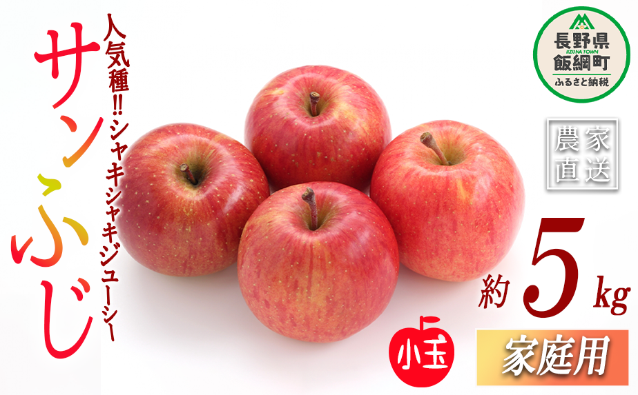 ![りんご サンふじ 家庭用 ( 小玉 ) 5kg 永正の地蔵尊神谷農園 沖縄県への配送不可 2026年1月上旬頃から2026年3月上旬頃まで順次発送予定 令和7年度収穫分 信州 果物 フルーツ リンゴ 林檎 長野 11000円 予約 農家直送 長野県 飯綱町 [0775]](https://www.furusato.aeon.co.jp/g_img/205907/1434913_1744770687_square_image.webp)