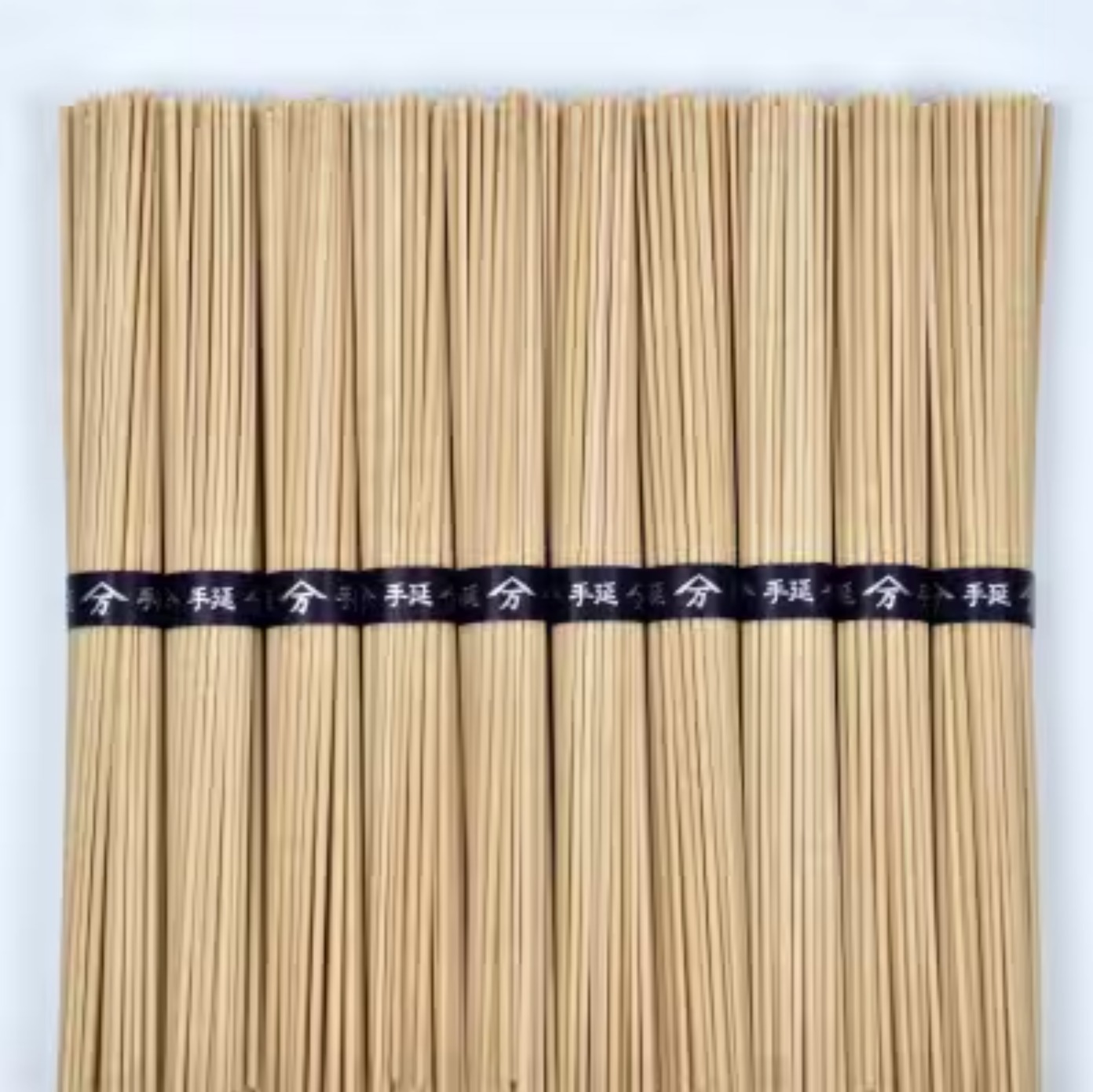 前日の夜に仕込みをすることを『宵ごね(よいごね)』と言います。宵ごねづくりは、一晩じっくりと寝かせ、しっとりと落ち着いた生地を製麺していきます。熟成を繰り返し、時間をかけて製麺することで手延べの強いコシが生まれます。奥大和、山添村の昔と変わらない自然の中で、『宵ごねづくり』にこだわり、毎日の天候を伺いながら、伝統の手延べの製法で仕上げています。