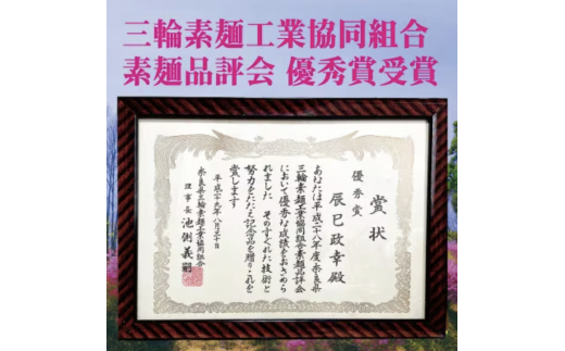 ※1:平成27年・28年 三輪素麺工業協同組合素麺品評会 優秀賞受賞