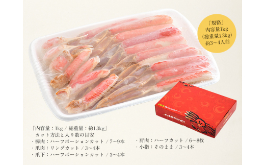カット済ズワイ蟹ハーフポーション 1kg