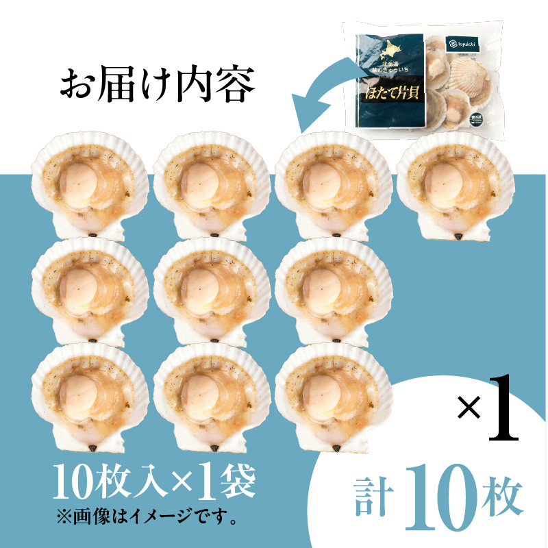 北海道噴火湾産ホタテ片貝 Lサイズ (1枚 9〜10cm)/10枚×1袋【計10枚】