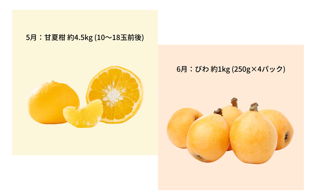 ※賞味期限:常温5日(びわ・小紅原早生みかん)、常温7日(スイートスプリング・香緑・デコポン・ゆら早生みかん・さぬきゴールド)、冷蔵5日(いちご・シャインマスカット)、冷蔵7日(甘夏柑)