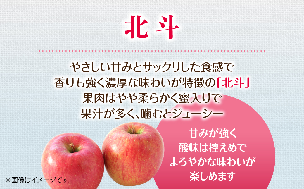 「北斗」は、やさしい甘みとサックリした食感で、香りも強く濃厚な味わいが特徴です。果肉はやや柔らかめで、蜜入りで果汁が多い品種のため、噛むと果汁がじゅわっと広がります。甘みが強く、酸味は穏やかなので、まろやかな味わいを楽しめます。