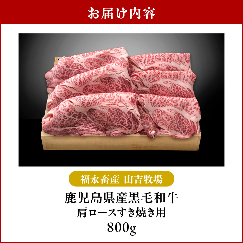 福永畜産 山吉牧場 鹿児島県産 黒毛和牛 肩ロース すき焼き用 800g 肉 牛 牛肉 ビーフ 薄切り スライス サシ 霜降り すき焼き 鍋 とろける 美味しい デパート 冷凍 国産 瀬戸口精肉店 山形屋 ふるさと納税 鹿児島 鹿児島市 おすすめ ランキング プレゼント ギフト K326-004