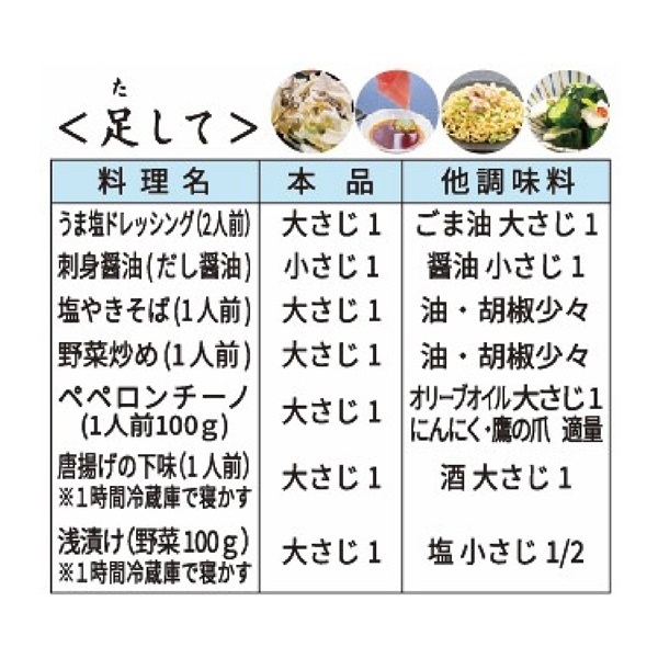 【原材料】合わせだし(鰹枯節、さば削り節、乾燥椎茸、あご煮干、煮干いわし、昆布)(国内製造)、昆布エキス、食塩、淡口醤油、鰹節エキス、酵母エキス、鰹節だし/アルコール、加工でん粉、調味料(アミノ酸等)、(一部に小麦・大豆・さばを含む)