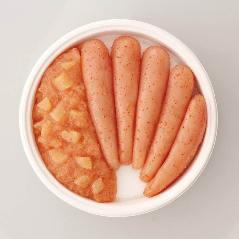 【明太子】すけとうだらの卵(ロシア)、米発酵調味料、食塩、唐辛子、たん白加水分解物、ゆず、酒、醤油、みりん、昆布エキス、魚醤/ソルビット、調味料(アミノ酸等)、酸化防止剤(ビタミンC)、酒精、酵素、発色剤(亜硝酸Na)、香辛料、(一部に小麦・大豆を含む)【数の子】すけとうだらの卵(ロシア)、にしんの卵、食塩、米発酵調味料、唐辛子、たん白加水分解物、ゆず、酒、醤油、みりん、昆布エキス、魚醤/酸化防止剤(ビタミンC)、ソルビット、調味料(アミノ酸等)、pH調整剤、酒精、唐辛子抽出物、酵素、発色剤(亜硝酸Na)、香辛料、(一部に小麦・大豆を含む)