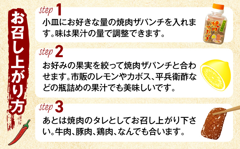 レモンやすだち、平兵衛酢といった地域特産の柑橘と焼肉ザパンチをお皿で混ぜ合わせ、塩だれとしてお召し上がりください。