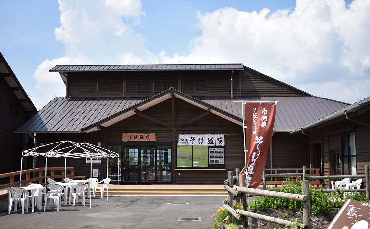 <南阿蘇そば道場>は、阿蘇山と南外輪山に挟まれた南郷谷の、そのほぼ真ん中、【道の駅あそ望の郷くぎの】施設内に立地。