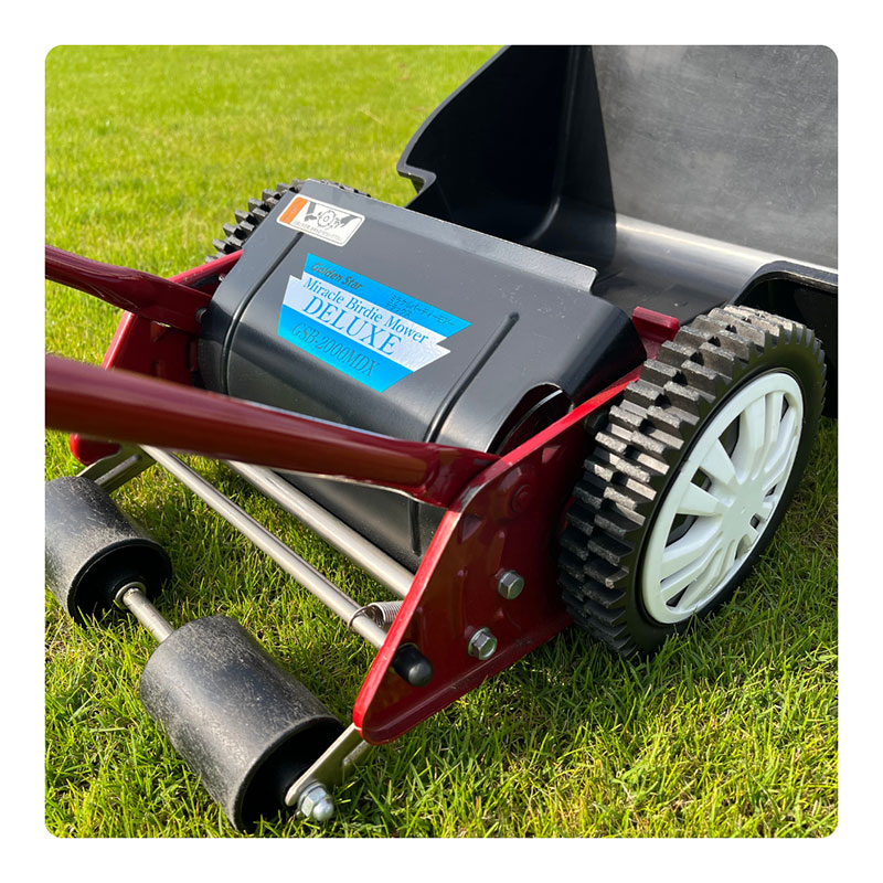 箱から出して、準備は2つ!ハンドルの取付とキャッチャーを取り付けるだけで作業OK!面倒な刃調整が不要なので、そのまま走り出して頂く事が可能です。常に一定の擦り合わせをキープすることで、切れ味抜群。切れ味が良いと芝生へのダメージも軽減され元気な芝生が育つことが期待できます。