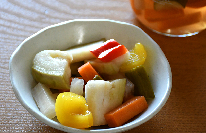 原材料名/水なす、パプリカ、大根、にんじん、きゅうり、漬け原材料[米酢、みりん、昆布だし、鰹だし、しいたけだし、