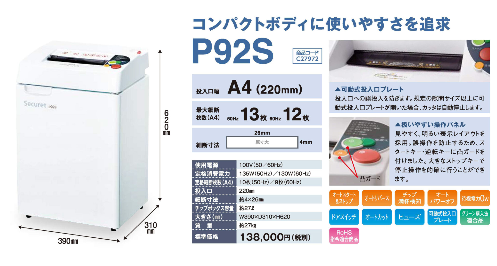 最大細断枚数:13/12枚(50/60HZ) A4用紙