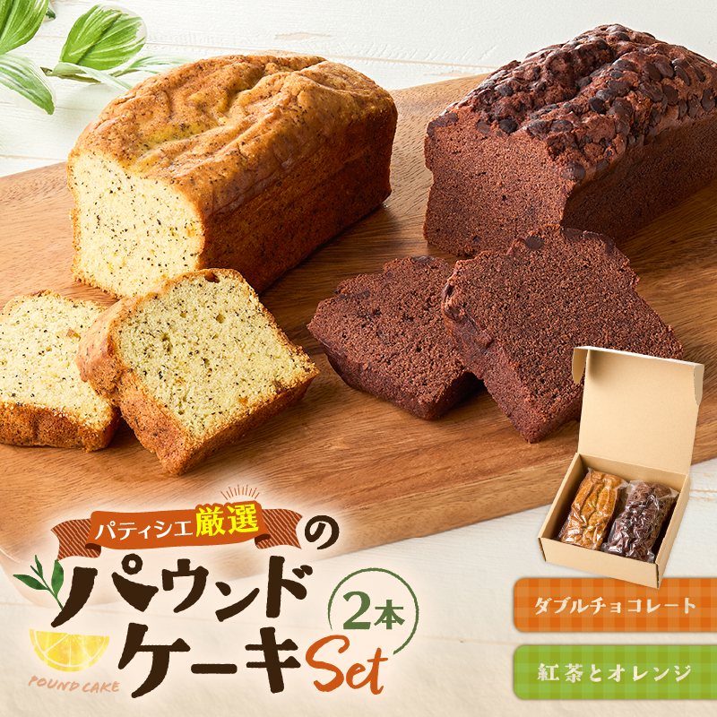 当店人気のパウンドケーキ(紅茶とオレンジ、ダブルチョコレート)を1本ずつセットにした2本入りの商品になります。