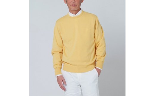 日本製 カシミヤ100% クルーネック 黄色 Lサイズ(身幅54cm 身丈65.5cm)×1枚