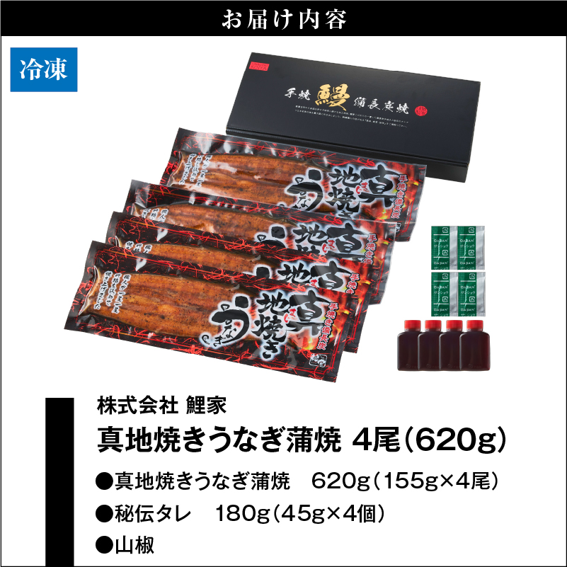 真地焼きうなぎ蒲焼 620g(155g×4尾)