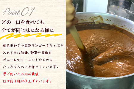 牛肉(宮崎牛)、マンゴーピューレ、ソテードオニオン、赤ワイン、トマト水煮、にんにく、しょうが、香辛料各種、等
