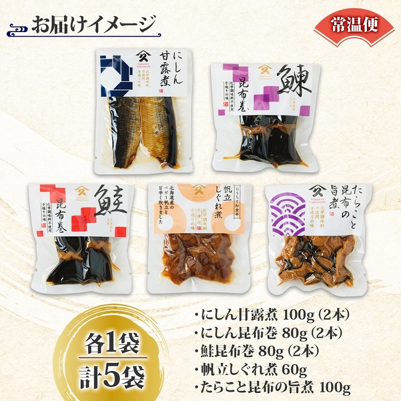 タカハシ食品の定番のお惣菜、5種をセットにしました。