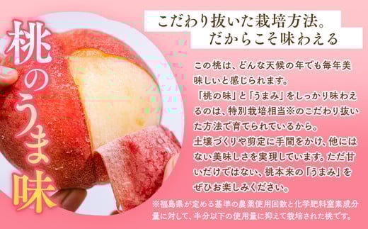 *農薬の使用量を福島県基準の半分以下に抑えて栽培した「特別栽培相当」の桃です。
