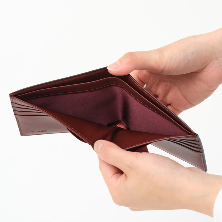ほんのり輝く艶感も品良く、内装のポケットひとつひとつ異なる細やかなシボ感も魅力です。