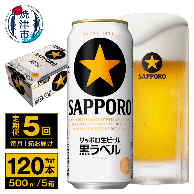 (定期便)サッポロ生ビール黒ラベル500ml×24本(1箱)×5回