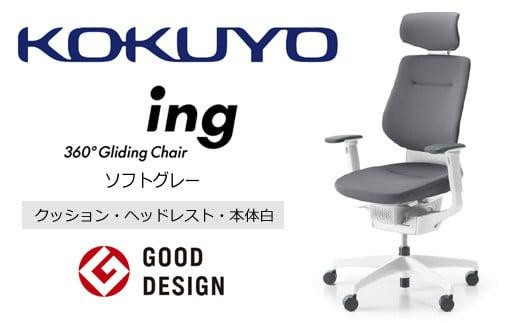 Mia2_コクヨチェアー イング(ソフトグレー・本体白)/ヘッドレスト・クッション/カーペット用(Wキャスター) /在宅ワーク・テレワークにお勧めの椅子
