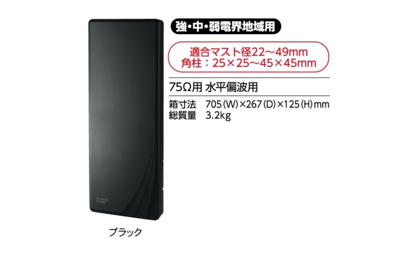・強・中・弱電界地域用 ・住宅の美観に馴染む壁面用アンテナ ・簡単設置