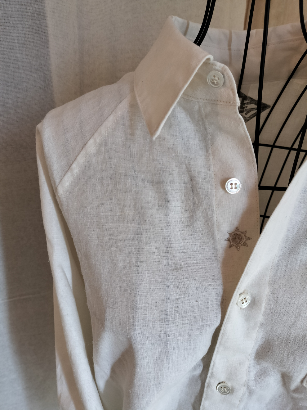 第2ボタンを開けると、太陽の刺繍が顔を出します。