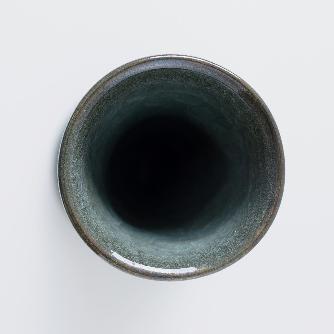窯出し直後から、数日後、数年後、数十年後に、ピンピンと音を立て、作品の表面に、貫入と呼ばれる亀裂が入ります。これが、「氷裂貫入青瓷」が “生きている陶器” と言われる所以です。