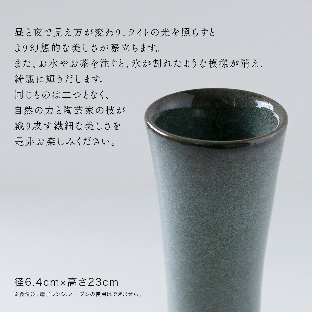【氷裂貫入青瓷】花器 (小野寺裕司 作) 径6.4cm×高さ23cm | 花 花瓶 陶器 陶芸 インテリア [EW34-NT]-[EW34-NT]