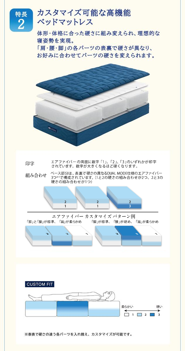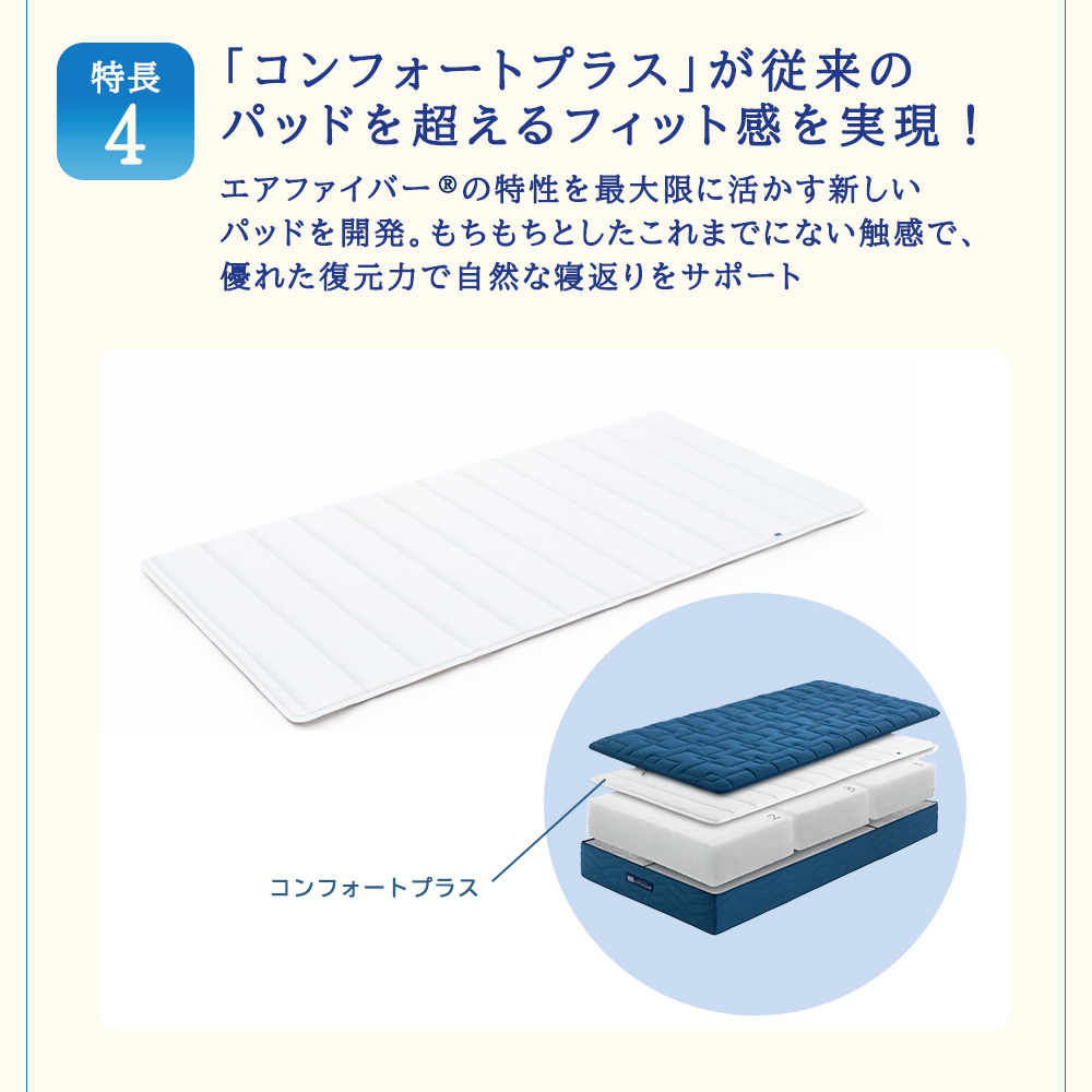エアファイバーの構造を進化させたことで、耐久性を損なわず寝心地を向上させました。
