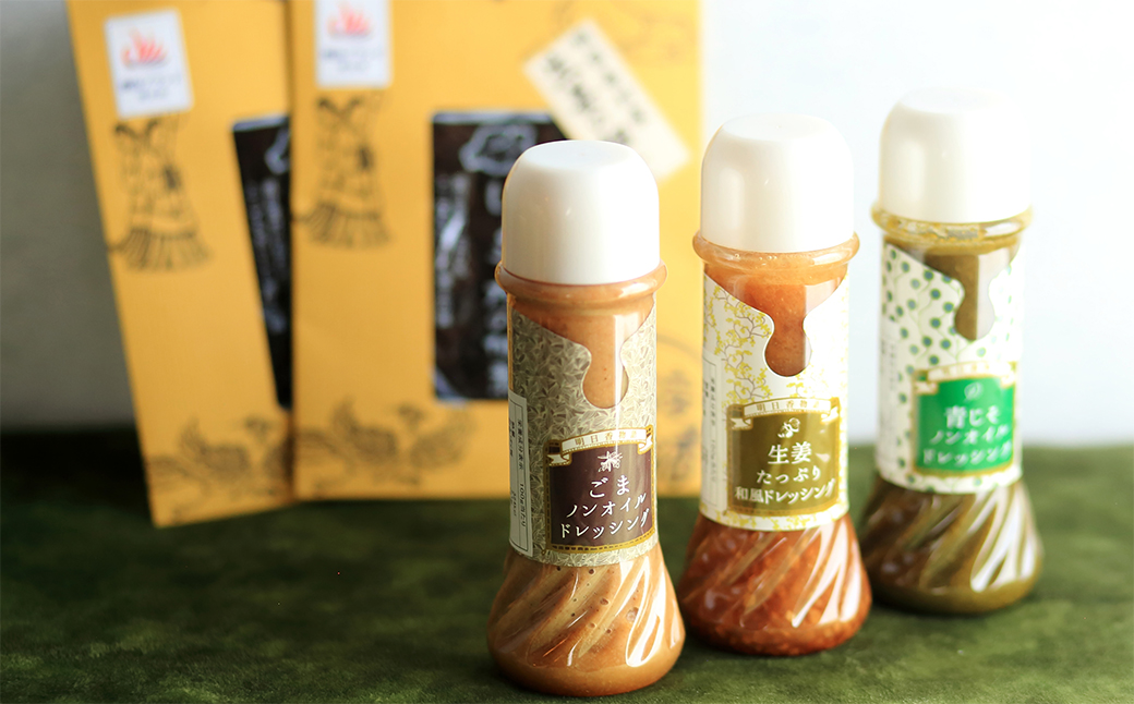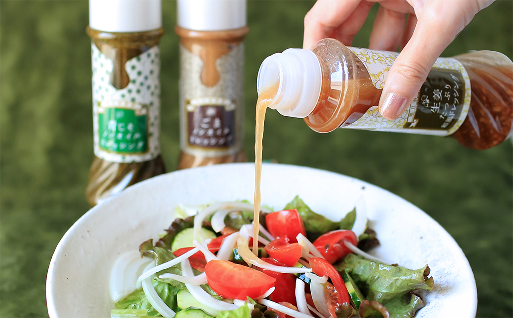 生姜の風味と玉ねぎのほのかな甘みが絶妙にマッチした和風ドレッシング。その名の通り、粗くみじん切りにされた生姜がたっぷり入っていて、シャキシャキした食感が楽しめます。生野菜や温野菜サラダのほか、冷やっこなどの豆腐料理にかけてもおいしいです。
