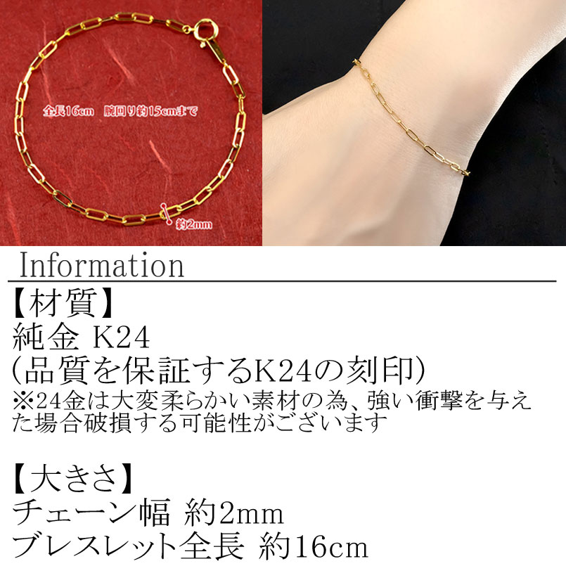 純金 24金 ブレスレット クリップチェーン 全長16cm