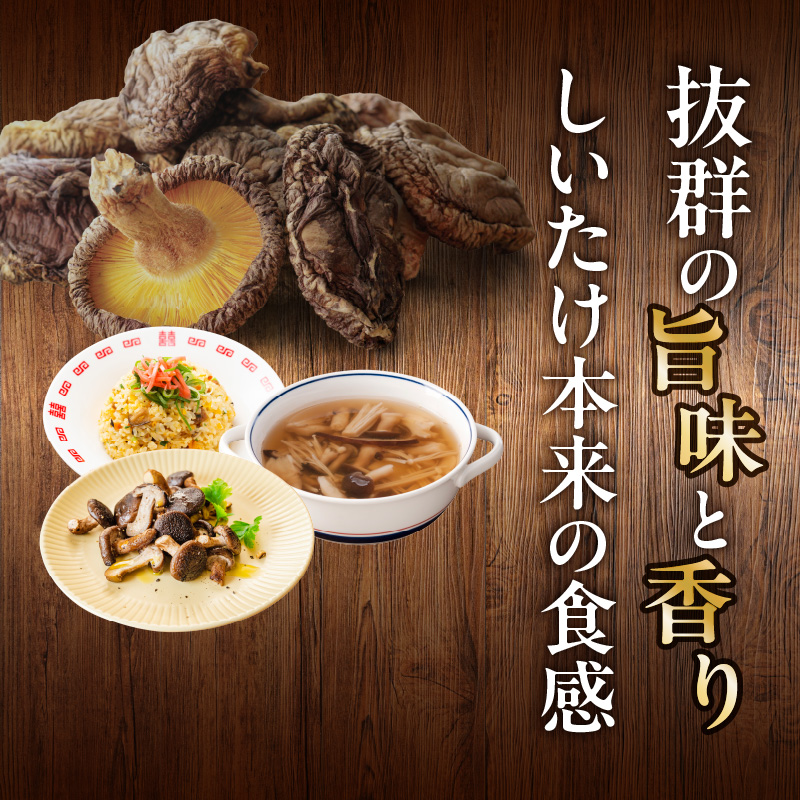 スライス乾しいたけは、肉厚にカットしており、しいたけ本来の食感を存分に楽しめます。