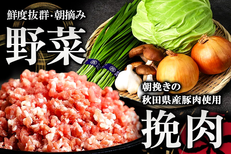 ■原材料:豚肉(秋田県産)、小麦粉、玉ねぎ、キャベツ、ニラ、にんにく、椎茸、オイスターソース、醤油、ごま油、清酒、蜂蜜、米味噌、食塩、米粉、澱粉(一部に小麦・大豆・豚肉・ごまを含む)