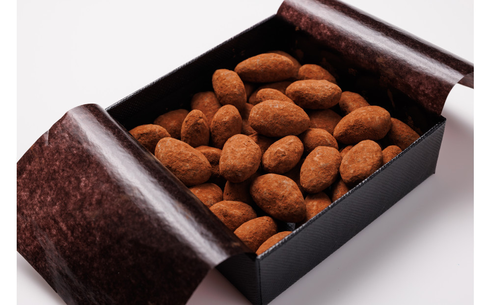 キャラメリゼした香ばしいアーモンドを、濃厚なビターチョコレートでコーティングし、カカオパウダーで仕上げました。